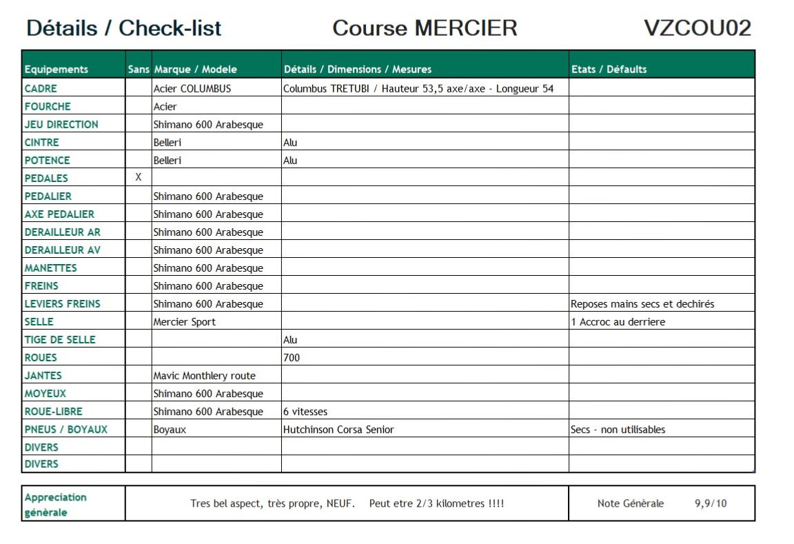 "NOS" VINTAGE MERCIER Columbus - Vélo de course neuf