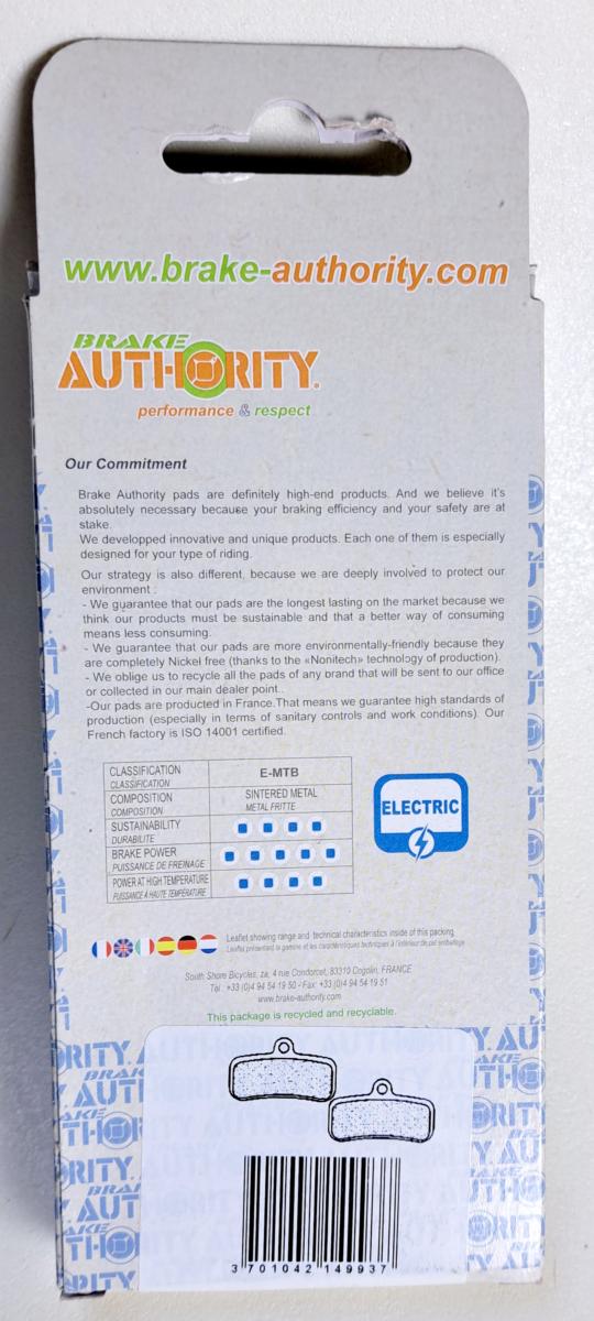 • 2 p. BRAKE AUTHORITY Plaquettes disques Saint ZEE, Shimano 4P VEE