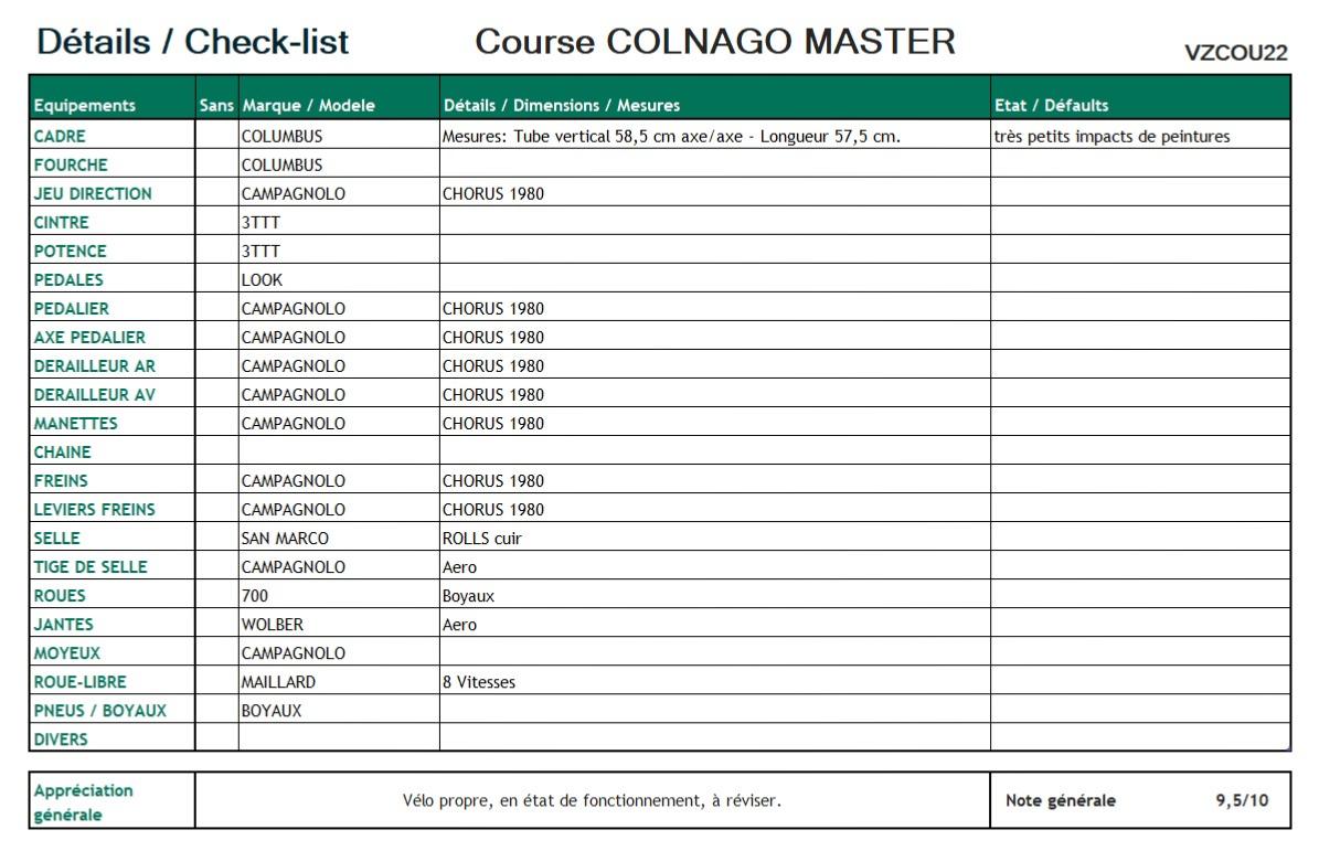 • VINTAGE COLNAGO MASTER - CAMPAGNOLO CHORUS 1980 - Vélo course